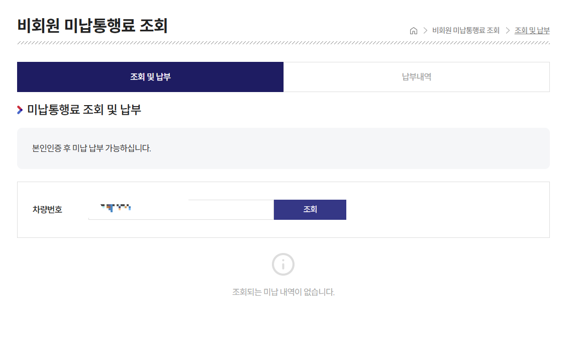 회원가입 없이 차량 번호와 본인 인증(휴대폰 or 공동인증서)만으로 미납 내역을 바로 확인할 수 있어 매우 편리합니다.