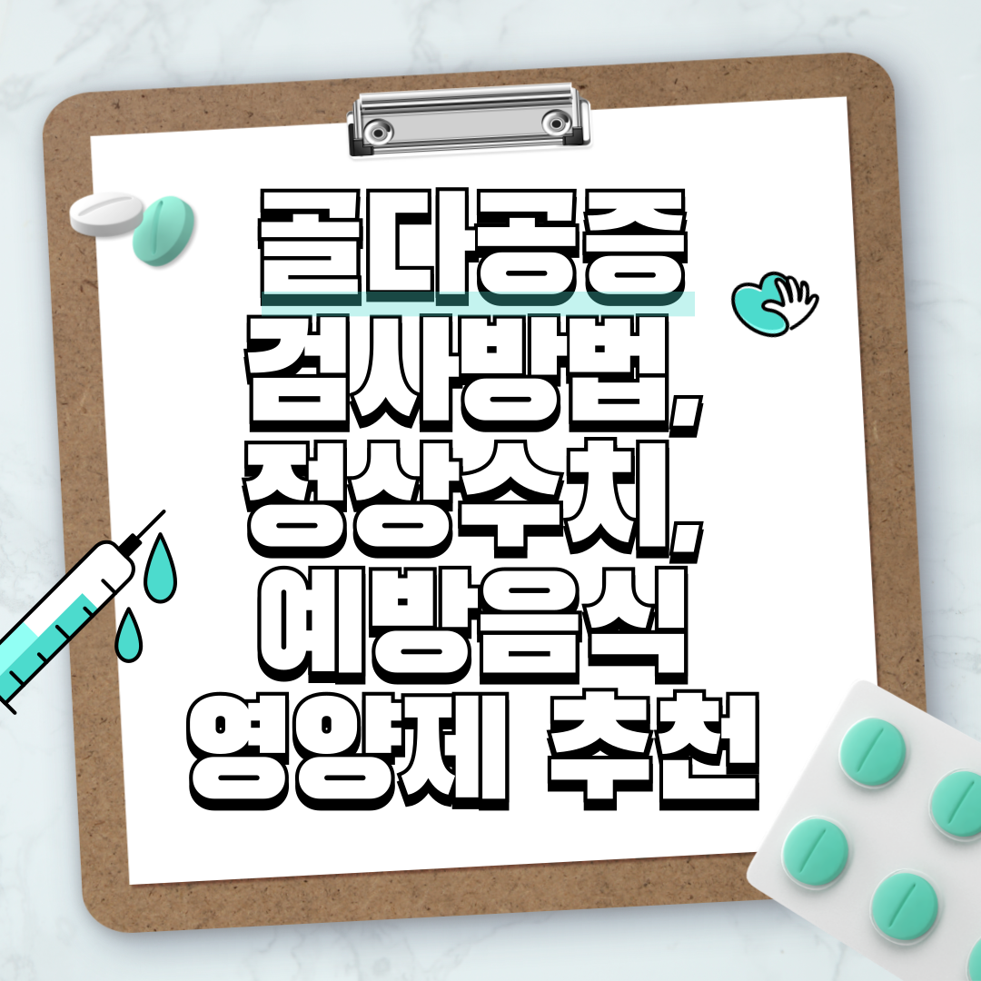 골다공증은 뼈의 밀도가 낮아져 쉽게 골절될 위험이 높은 질환입니다. 특히 50대 이상, 폐경 후 여성, 칼슘 섭취가 부족한 사람들에게 많이 발생합니다. 하지만 적절한 검사와 예방 관리로 충분히 예방할 수 있습니다. 이번 글에서는 골다공증 검사 방법, 정상 수치, 주요 증상, 그리고 예방에 좋은 음식과 영양제까지 상세히 알아보겠습니다.
