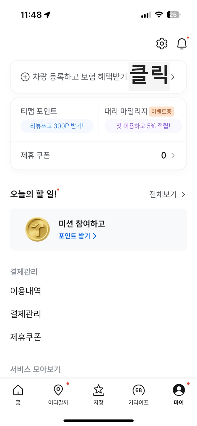- ‘차량등록하고 보험 할인 혜택받기 클릭
