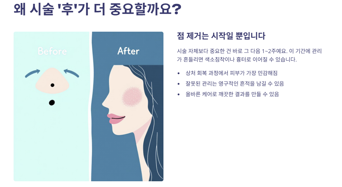 사실 점 제거 자체보다 중요한 건 “그 다음 1~2주”예요. 이 기간에 관리가 흔들리면 색소침착이나 흉터로 이어질 수 있거든요. 오늘은 헷갈리는 포인트만 딱 정리해드릴게요.