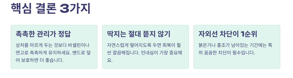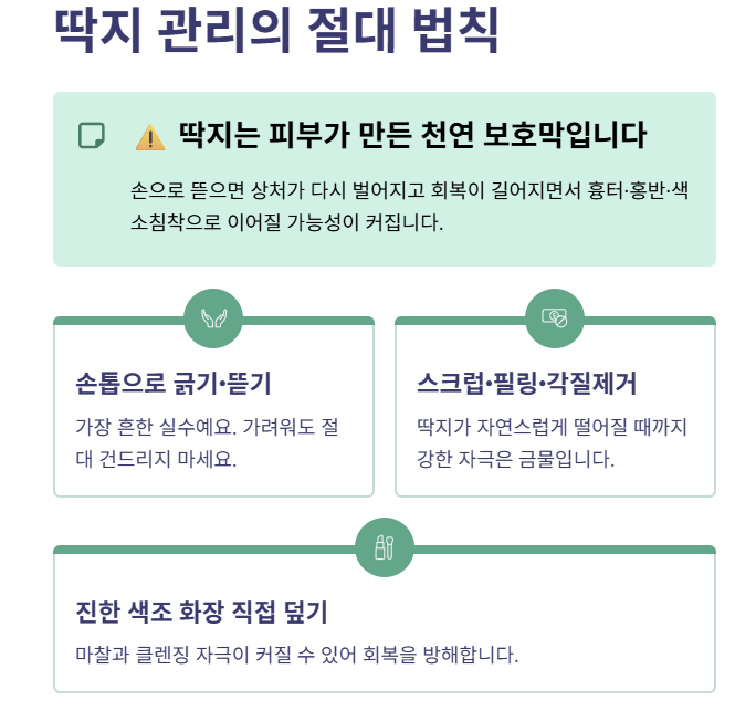 3) 딱지(각질) 생겼을 때: “절대 뜯지 말기”가 흉터/착색을 가릅니다
