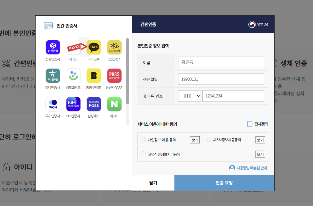 단, 본인 명의의 휴대폰과 공동인증서(또는 은행 계좌)가 필요합니다.